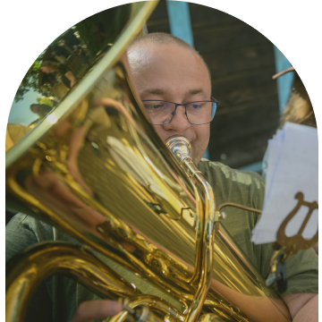 Jestem muzykiem amatorem. Przez większość mojej aktywności muzycznej grałem na akordeonie. W lokalnej orkiestrze dętej nauczyli mnie grać na tubie. Na festiwalu Fanfara w 2023 roku poznałem kolegę spod Krakowa, który zaprosił mnie do nieformalnej grupy muzyków grających polską muzykę tradycyjną. I tak od września 2023 roku jestem członkiem Kapeli Siwka. Początkowo na akordeonie, ale zmieniłem potem na tubę. Uwielbiam klasykę i polską muzykę tradycyjną. Nie cierpię jazzu wszelkiej maści 🙂